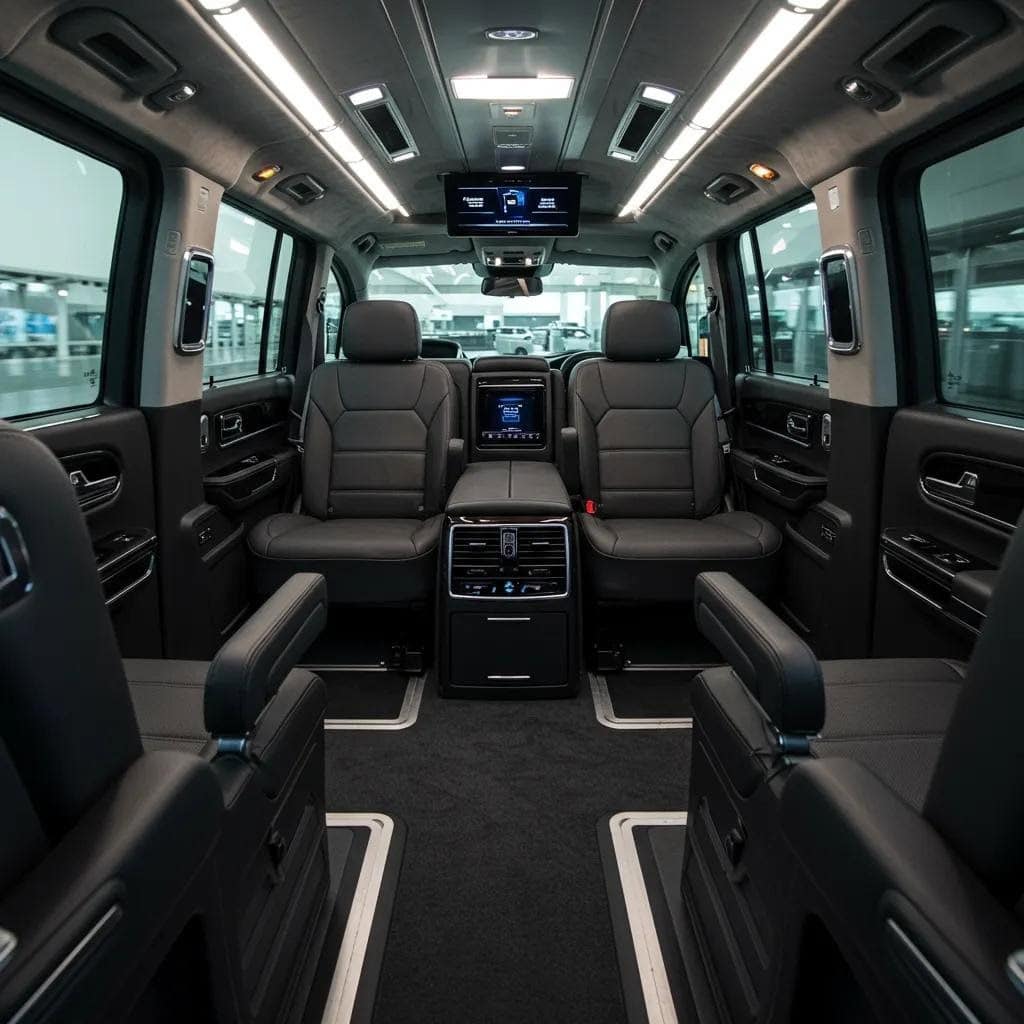 Executive fleets commonly include sedans for solo travellers, SUVs for small groups and people movers for team transfers, each with specific luggage and amenity capacities. Sedans prioritise privacy and productivity, SUVs balance space and comfort, and people movers enable efficient transport for groups or equipment. Below is a quick fleet spec table to aid vehicle selection when planning corporate pickups.